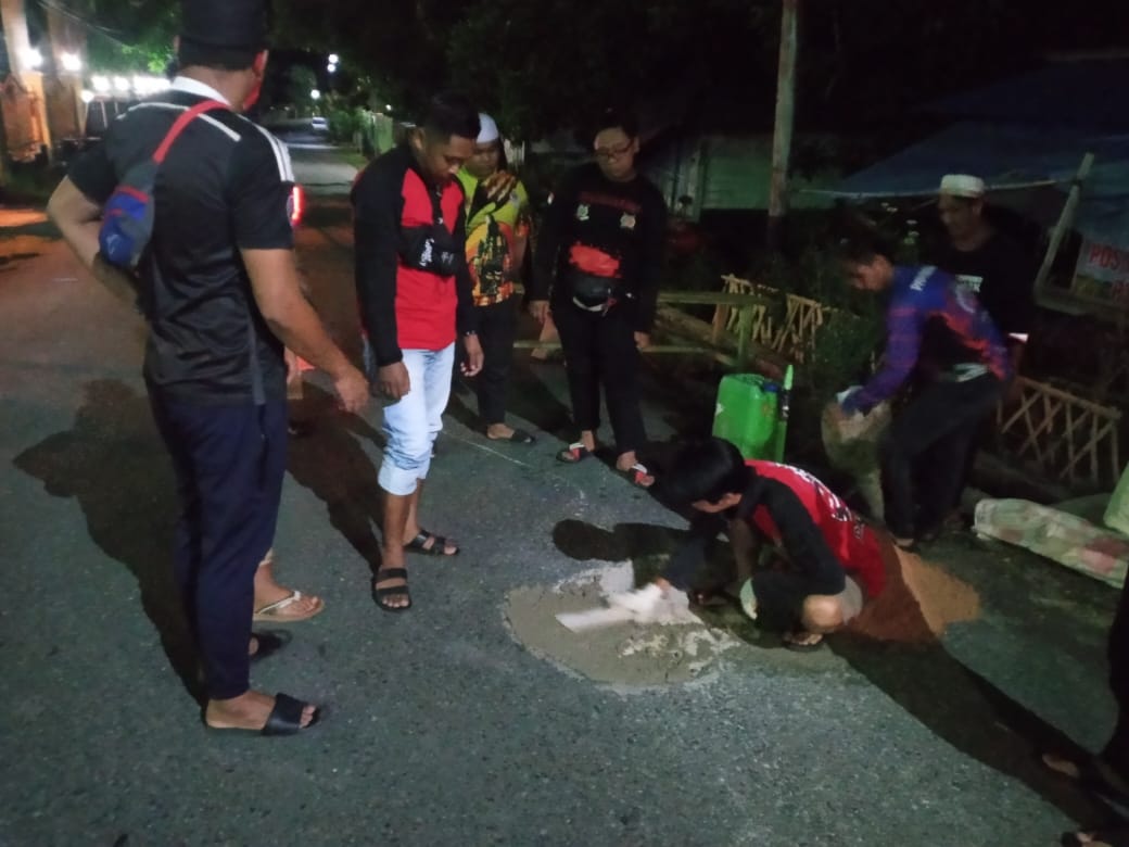 Gabungan Relawan Kotabaru (GRK): BPK Kampung Sasak, BPK Prisma, BPK Bamega, BPK Queen, BPK Tudak Jaya, BPK 02 Stagen, BPK Blit’s, BPK Kayuh Baimbai, BPK Rahel, BPK AL-Jamal Banjarmasin, dan R.E.E.K (Relawan Escorting Emergency Kotabaru) menambal jalan berlubang (rusak).