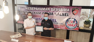 Untuk itu, Ditintelkam Polda Kalsel menggandeng anggota SMSI untuk bersama-sama menangkal hoaks melalui pemberitaan yang jujur, benar, independen, dan sesuai kaidah jurnalistik.