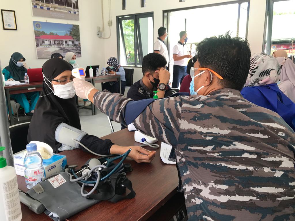 TNI AL melaksanakan serbuan vaksin Covid-19 tahap kedua kepada masyarakat maritim yang digelar di Pelabuhan Pelindo III Desa Stagen, Kecamatan Pulau Laut Utara, Selasa (29/6/2021).